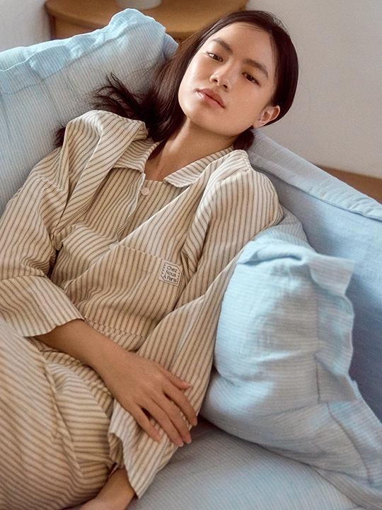 쉐누아파리의 남성용 무이 스트라이프 파자마 세트입니다.